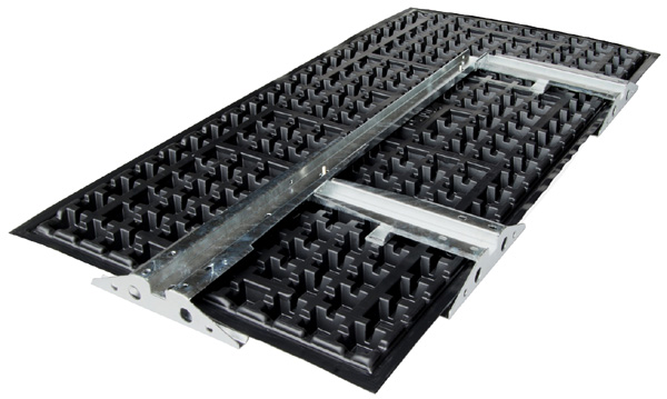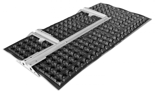 Basisplatte: Länge × Breite ca. 2,00 × 1,00 m, Höhe ca. 43 mm, Verfüllvolumen: ca. 16 l/m², Druckbelastung bei 10 % Stauchung: ca. 250 kN/m²