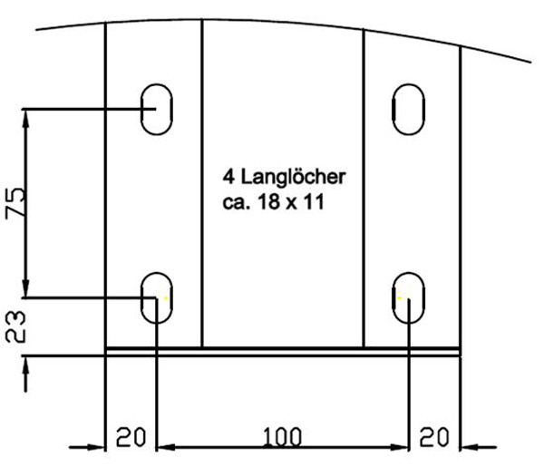 Pfostenaufnahme: Länge ca. 1470 mm, Höhe ca. 35 mm ab Oberkante Basisplatte
